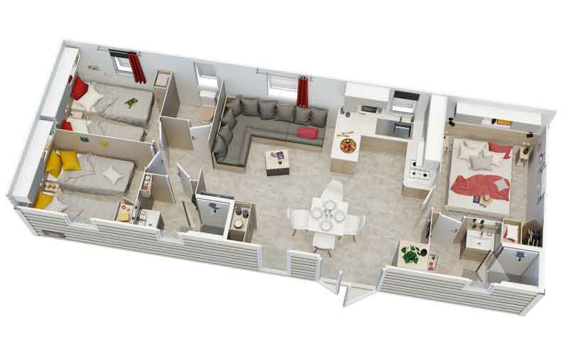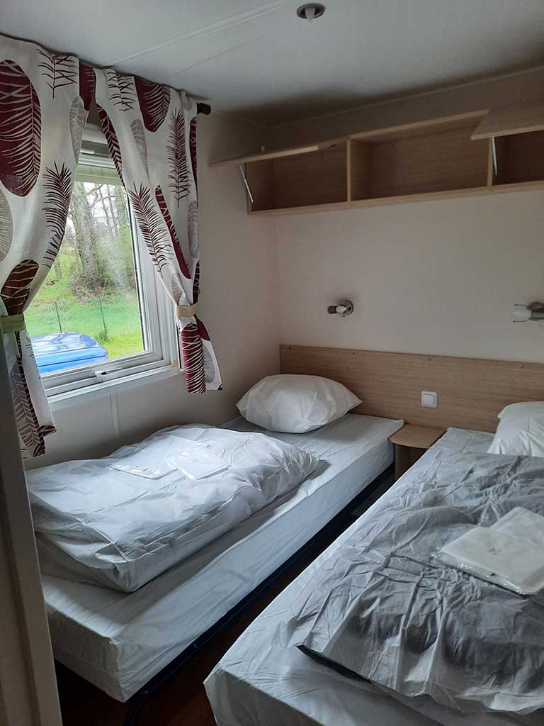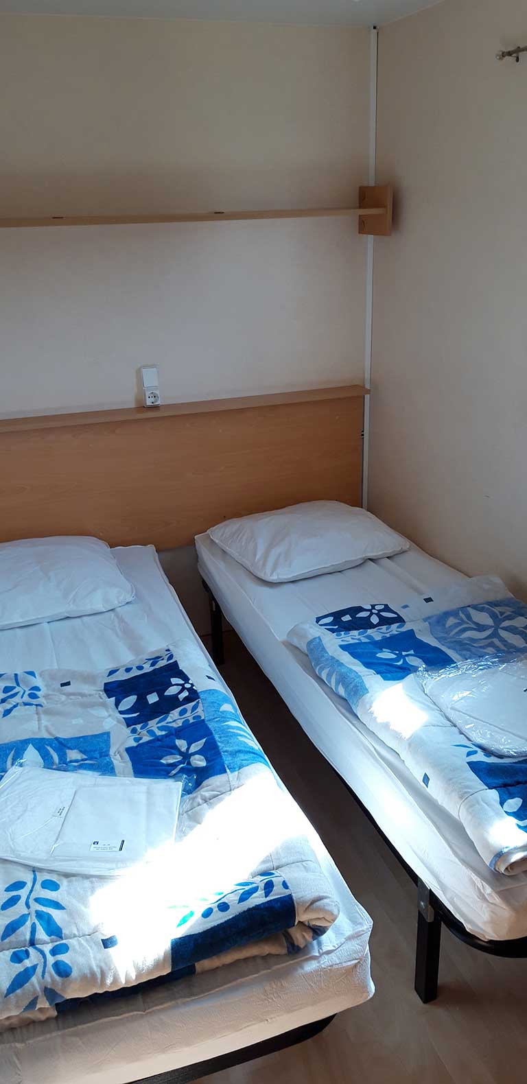 Pour des vacances confortables, nous vous proposons des mobil-homes équipés de deux chambres pouvant accueillir une famille de 2 à 6 personnes pour vos vacances.